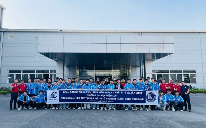Hôm nay ngày 28/11/2025, đoàn cán bộ, giảng viên và sinh viên Khoa Cơ khí – Ô tô và Xây dựng đã có chuyến tham quan học tập đầy ý nghĩa tại Nhà máy Ô tô Hyundai Ninh Bình.